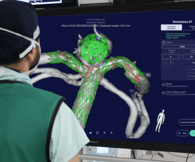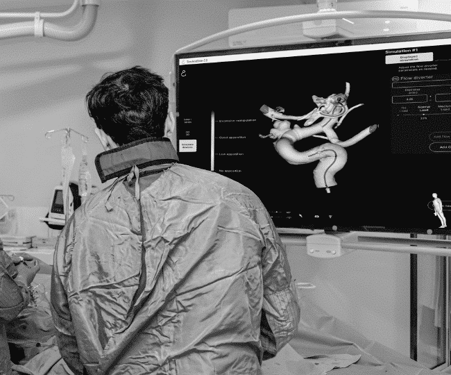 We are Sim&Cure, a pioneering team excelling in research and innovation, delivering innovative solutions in aneurysm care through Digital Twin and AI technologies. By collaborating with healthcare professionals and industry experts, we help enhancing procedural success and improving patient treatments.